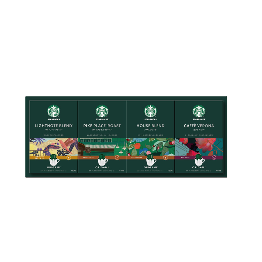 香り豊かなコーヒーを1杯ずつ、特別な器具を使わずにいれられるドリップタイプのコーヒー。 A:ドリップコーヒー4袋入り×3(ハウス ブレンド・カフェ ベロナ®・ライトノートブレンド×各1 B:ドリップコーヒー4袋入り×4(ハウス ブレンド・カフェ ベロナ®・ライトノートブレンド・パイクプレイス ロースト×各1) C:ドリップコーヒー4袋入り×6(ハウス ブレンド・カフェ ベロナ®×各2、ライトノートブレンド・パイクプレイス ロースト×各1)